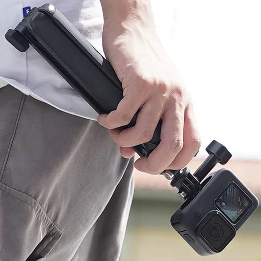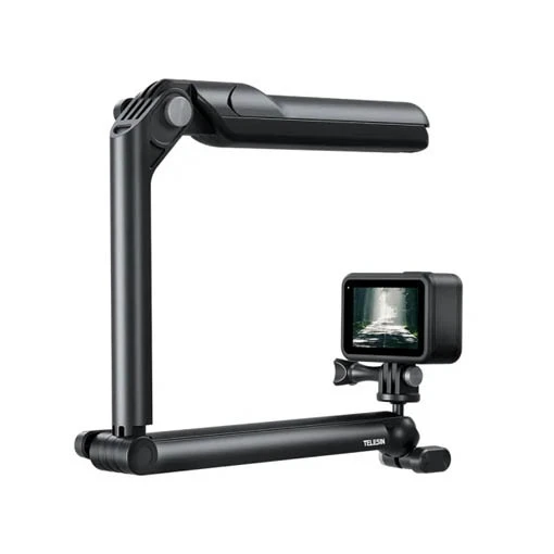 Une fois repliée, cette perche Telesin se change en poignée idéale pour saisir des vidéos stables d’un sujet de face. À l’aide de sa vis de serrage relativement large et stable, vous pourrez aussi utiliser la perche comme stabilisateur en plaçant la vis à plat sur le sol. Sa tête rotative à 360° vous permettra de régler et d’ajuster l’angle de vue de votre caméra selon vos envies. Grâce à son trépied doté de pads antidérapants en silicone, réalisez des prises de vue au sol, depuis un bureau ou toute autre surface plane. Une dragonne est aussi fournie pour assurer la sécurité de votre caméra. Facile à ranger et transporter, cette perche pourra vous suivre partout où vous allez !