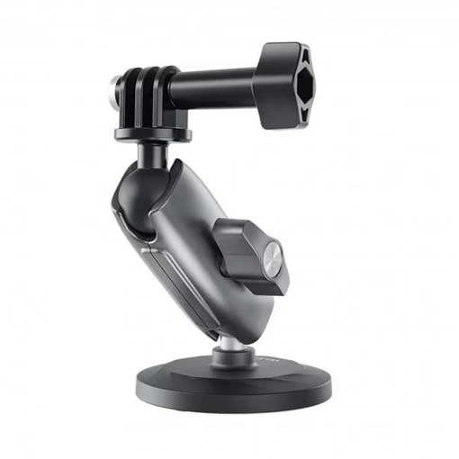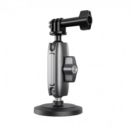 Profitez d’un angle à 360° avec votre caméra d’action grâce à cette fixation Telesin. Sa conception à double rotule permet d’obtenir des prises de vue à 360°. Cette fixation est compatible avec tous les appareils acceptant sa vis 1/4″ et sa fixation type GoPro. Sa base magnétique permet de l’installer sur des supports comme un véhicule, une fenêtre, une porte, etc. Cette base est dotée d’un coussinet en silicone afin de ne pas rayer votre matériel. Compacte et ergonomique, cette fixation intègre une vis qui permet de serrer et desserrer le dispositif facilement.