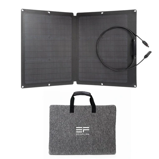 Idéal pour recharger une Delta Mini ou une station de charge de la gamme RIVER, ce panneau solaire 60W est livré avec sa housse de transport et ne pèse que 2 kg.