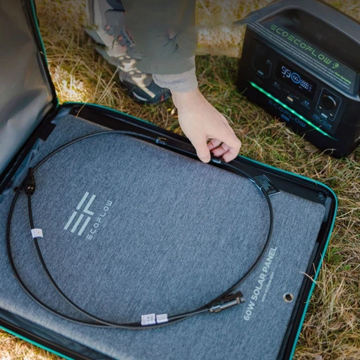 Rechargez votre power station Delta Mini ou une station de charge de la gamme RIVER EcoFlow grâce à l’énergie solaire. Ce panneau solaire portatif signé Ecoflow est d’une puissance de 60W. Disposant d’un connecteur MC4, le panneau solaire Ecoflow 60 W pourra être monté en série afin de maximiser le rendement de conversion solaire.