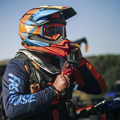 Cette pince surpuissante Gripper Mount permet d’installer votre caméra GoPro sur la mentonnière de votre casque de cross, casque de VTT de descente ou casque intégral. Son puissant ressort et son grip antidérapant assurent un maintien ferme même en cas de secousses extrêmes.