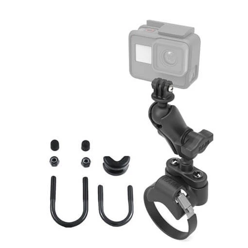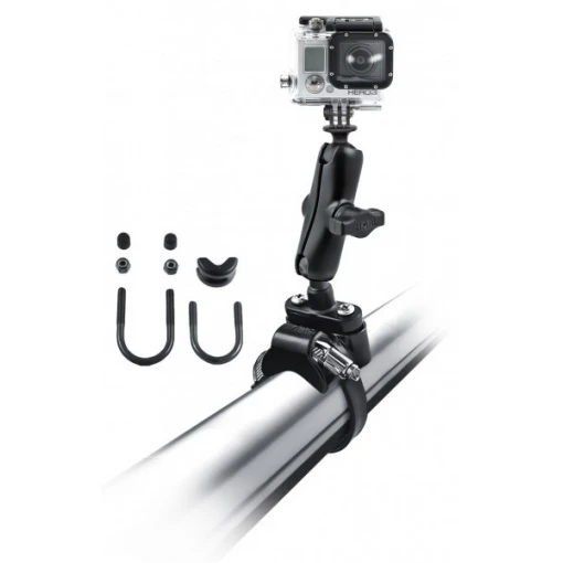 Pour le montage sur les petits et gros diamètres, le RAM-MOUNTS Roll Bar se compose de deux différents étriers, un bras de 90mm et d’une boule GoPro.