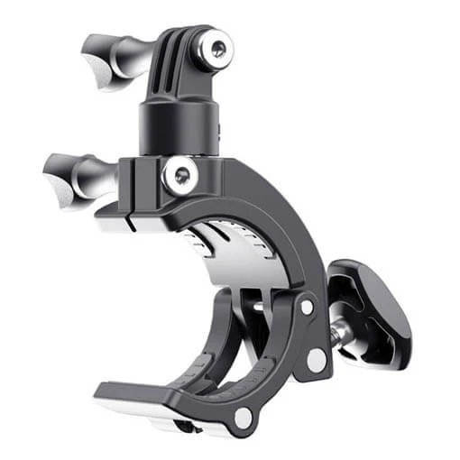 Cette fixation permettra d’installer une caméra GoPro sur n’importe quel tube ayant un diamètre compris entre 35 et 55mm. Ce support se présente sous forme d’une pince étau qui se serre à l’aide d’une vis papillon. Cette fixation en métal est très robuste et légère à la fois. Avec ses machoires recouvertes de caoutchouc sur l’intérieur, elle maintiendra très fermement votre caméra, même en présence de fortes vibrations ou secousses, sans faire de marques sur le tube support. Sa tête « Swivel Head » permettra d’orienter facilement votre caméra sur 360° afin de toujours obtenir l’angle désiré. Cette fixation sera idéale par exemple en sport automobile ou 4×4 afin d’installer une GoPro sur un arceau ou un pare-buffle. Bien d’autres montages sont possibles comme sur un cadre de vélo, une fourche de moto, une branche d’arbre, une rembarde, une rame, un mât de windsurf ou de dériveur…