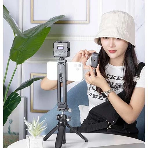 Ce support pour tablette Ulanzi en plastique permet de fixer votre tablette sur un trépied ou autre support comportant une 1/4″ ou Arca. Une fixation Cold Shoe au dessus de la fixation permet d’ajouter un micro, une lampe ou autres accessoires. Le support est ajustable pour des téléphones ou tablettes entre 65mm et 245mm.
