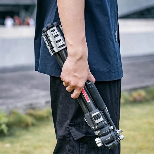 Le trépied vidéo Ulanzi TT09 VideoGo Travel est idéal pour les créateurs de contenus, vloggeurs et globe-trotteurs. Ce trépied en fibre de carbone pourra accueillir une caméra, un appareil photo hybride ou autre boîtier disposant d’une fixation 1/4″ et dans la limite d’une charge de 5 kg. Ce trépied Ulanzi peut supporter une charge totale d’environ 20 kg. Vous pourrez ainsi y compléter votre set up, en ajoutant des accessoires grâce à sa fixation 1/4″. Dans sa poignée ergonomie, vous trouverez un tournevis à sept têtes qui vous permettra d’effectuer tous vos réglages.